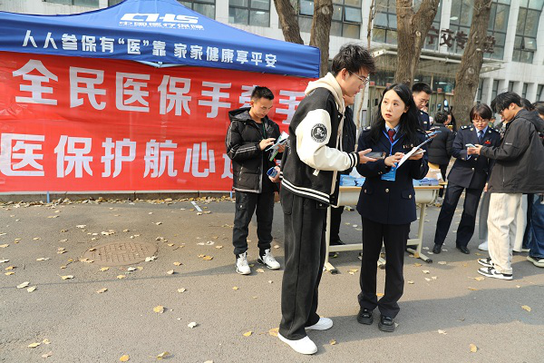 充分利用“线上+线下”的宣传模式,线上依托征缴工作群等平台,制作缴费操作流程图文版及视频版,安排专人负责群内税务相关问题解答;线下通过向群众发放宣传折页、医保政策进社区、进学校等方式,广泛宣传2025年度城乡居民医保参保缴费标准、缴费时间、缴费方式等,全方位、多渠道、零死角进行宣传。10月31日,沈北新区税务局、辉山区税务局联合沈北新区医保中心进入大学校园共同开展2025年度城乡居民医保缴费政策宣传活动,在活动现场设立咨询台,结合医保缴费指南等宣传资料,向在校大学生详细讲解医保政策,普及2025年城乡居民医保参保缴费政策及大学生可按学制趸缴特殊政策,并现场演示了医保缴费流程,协助学生通过“辽宁税务”微信公众号等线上渠道顺利参保缴费,扩大群众对医保政策和缴费流程的知晓率,提供暖心医保服务。