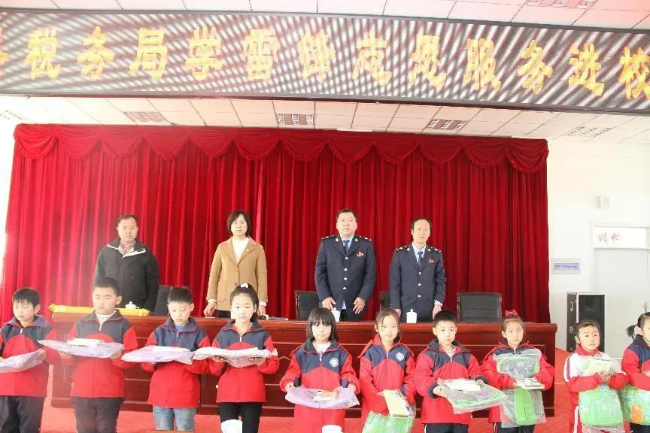 此次活动,税务青年志愿者为学生们讲解了雷锋精神的基本内涵、分享了雷锋故事,生动讲述了雷锋助人为乐、无私奉献的感人事迹,并用生动易懂的语言、贴近实际的案例向在场的学生们讲解了税收的意义、税收的产生和发展、税收的用处等,引导青少年树立税收法治观念,让依法纳税的种子在孩子们心中生根发芽。随后,喀左县税务局向卧虎沟小学捐赠了篮球、足球,向10名需要帮助的同学捐赠了文具、书包等学习用品,并叮嘱孩子们要从小事做起,争做自己心中的“小雷锋”,长大后用自己的一份力量回馈社会。
