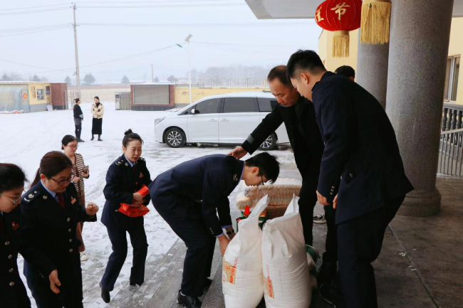 顶着风雪,税务局的青年志愿服务者们带着自费购买的米、面、油等爱心慰问品,早早的来到镇中心养老院,他们精神饱满、不畏严寒,看见院子内的积雪还没清除,便主动拿起各种工具,认真且快速的清理起养老院内的积雪,帮助减少老人们的日常活动空间安全隐患。活动中,税务干部们先是详细了解老人的居住环境,然后耐心同老人交流,询问他们的身体状况,陪他们聊天谈心,倾听他们养老生活中的点点滴滴。临别之际,税务干部们叮嘱老人们好好保重身体、注意防寒保暖,让老人们切实感受到敬老爱老的浓浓关切。