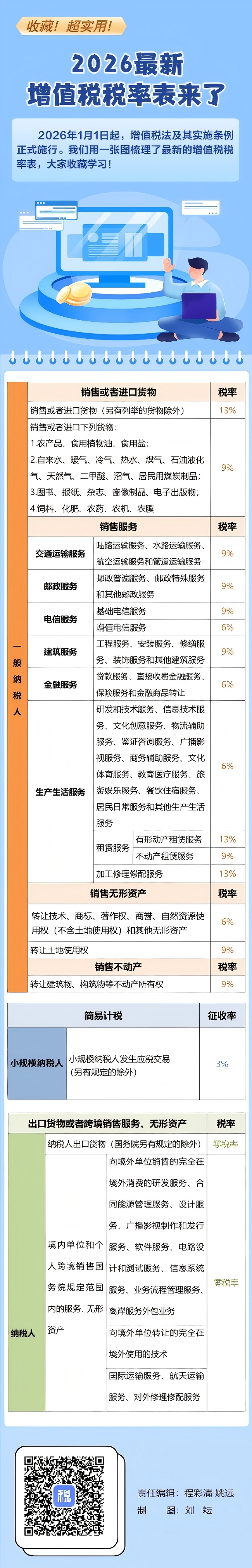 收藏!2026最新增值税税率表来了
