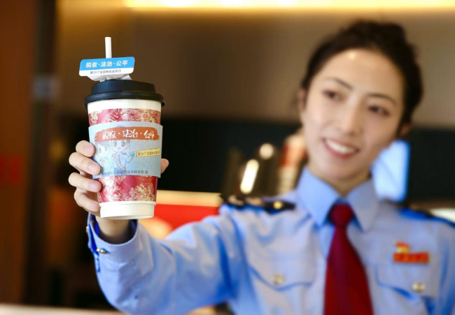 “平时对税收政策关注不多,今天买奶茶看到这个杯套,顺手扫了一下,发现里面有很多实用的内容,以后会多留意。”一位正在排队取餐的年轻人告诉记者。旁边几位大学生也拿着印有税宣字样的奶茶扫码关注,表示“氛围感拉满,想多了解一些创业相关的税费政策”。新颖有趣的互动方式让诚信纳税的理念在轻松氛围中悄然入心,吸引众多年轻人主动参与、自发分享。