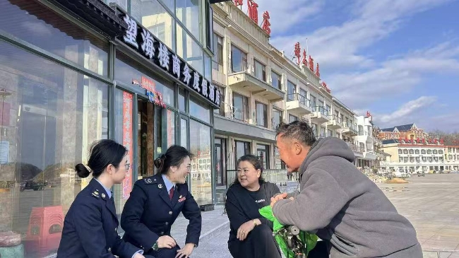 李颖去的是郭华丹家。老郭的海悦酒店还没复营业,到处都蒙着遮尘的布单。俩人站在“地当间儿”就熟络地唠上了,“今年可不能整那出了。”那出,是指酒店刚开业时老郭差点和消费者打起来的事。“他管我要发票,我寻思他找茬呢。咱原来就是打渔的,也不懂得给人发票的道理啊”,老郭哈哈哈地笑着。