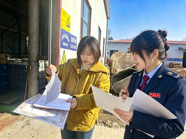 “这种新业务之前没办过,你们来了我们也就有底了。”面对税务人员送政策上门,企业法人崔女士说道。在现场,税务干部严格对照政策要求,逐项核对企业营业执照、危险废物经营许可证、经营场所权属证明等资料,并深入企业经营场地,实地核实仓储管理、收购渠道等运营实况,全面掌握其收购渠道稳定性和业务真实性,确保企业完全符合“反向开票”的政策门槛。